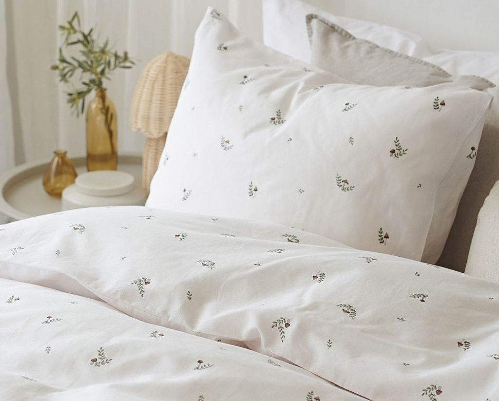 Alvin skapar den där extra höstliga känslan i hemmets alla sovrum. Bäddsetet har ett fint mönster av små, bruna svampar och gröna löv på en ljusbeige bottenfärg. Alvin är därför det perfekta valet av bäddset om man vill nå en extra söthet under höstens ruskiga kvällar!