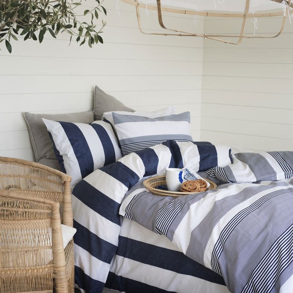 Block Stripe är ett klassiskt bäddset från Borganäs of Sweden med ett randigt mönster. Ränderna är lodräta och breda i en härlig kombination av blått och vitt. Här skapas ett trendigt sovrum på ett enkelt sätt. Bli inspirerad av modernitet och gör det enkelt: investera i ett klassiskt bäddset som aldrig går ur tiden!