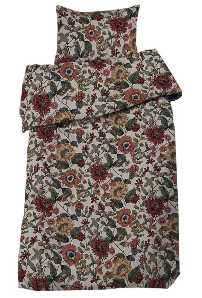 Dahlia Beige Blommor Bäddset Enkeltäcke 150x210 Redlunds