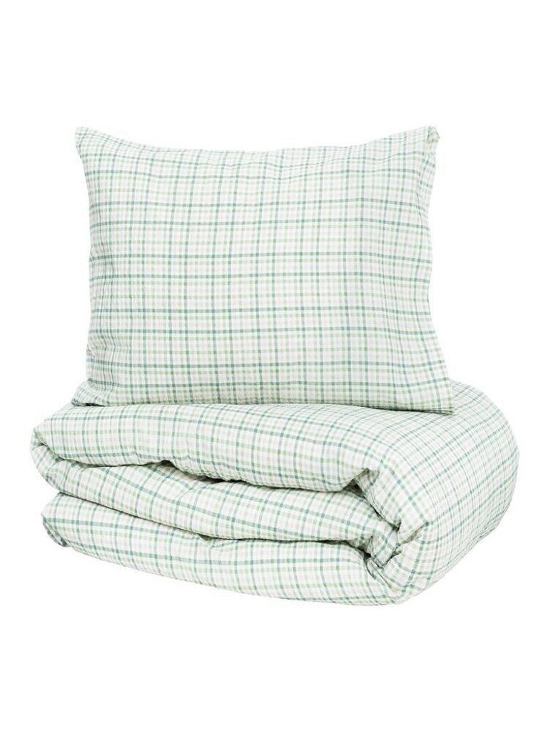 Dalskog Seersucker Grön Rutigt Bäckebölja Bäddset Enkeltäcke 150x210 Kosta Linnewäfveri
