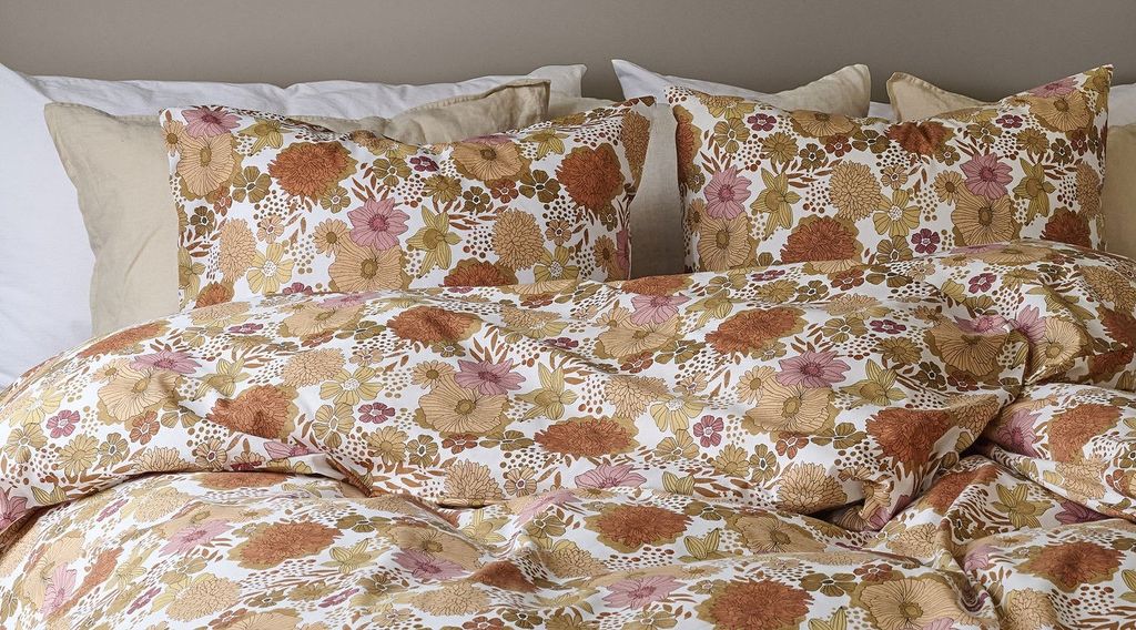 Delilah Multi Bäddset från Borganäs kombinerar stil och komfort, med ett charmigt blommigt mönster i jordnära toner av beige, rosa och orange mot en vit bakgrund. Den mjuka bomullskvaliteten ger en underbar känsla mot huden.