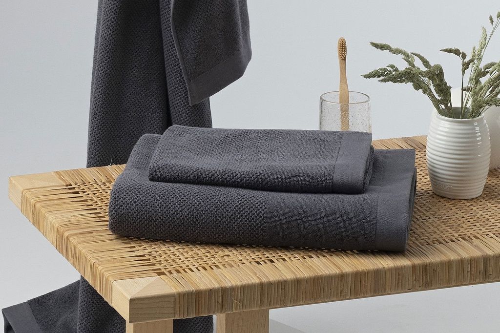 Enzo är en härligt mjuk frottéhandduk från Borganäs of Sweden. Handduken har rundade hängare på kortsidorna för att enkelt kunna hänga upp handduken efter användning. Handduken har en fin struktur med en kontrasterande slät bård samt bred kant nedtill.
