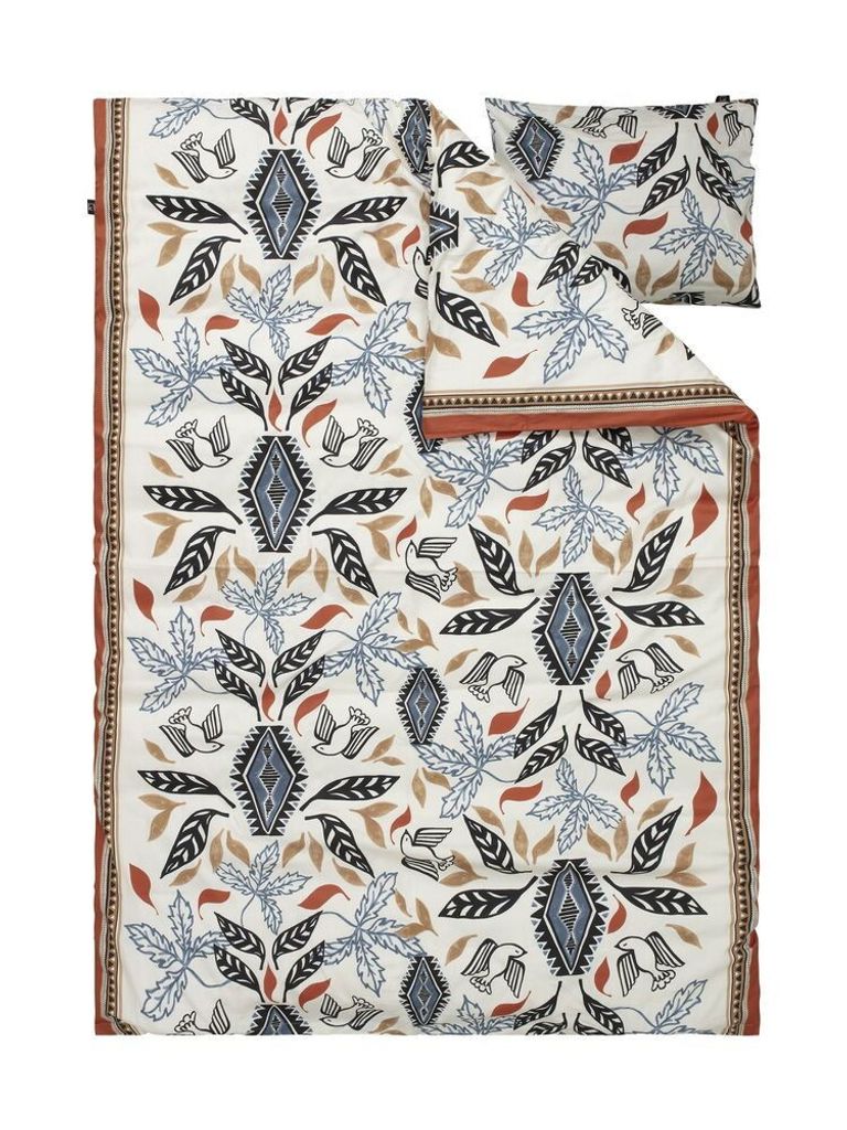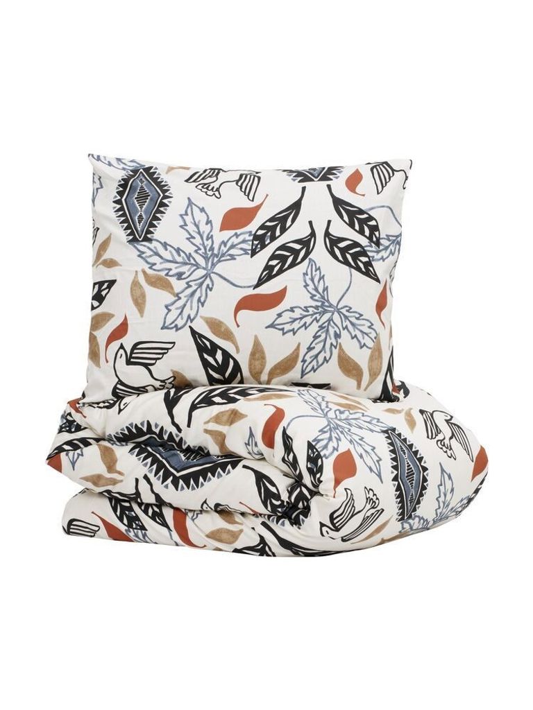 Förvandla ditt sovrum med det vackra bäddsetet Erikstad från Kosta Linnewäfveri. Detta stilfulla set är tillverkat i luxuös satinkvalitet av 100 % bomull och bjuder på en oemotståndligt mjuk och behaglig sovupplevelse. Det konstnärliga mönstret visar fåglar och blad i harmoniska färgtoner, omramat av en elegant dekorativ kant som ger ett raffinerat uttryck.