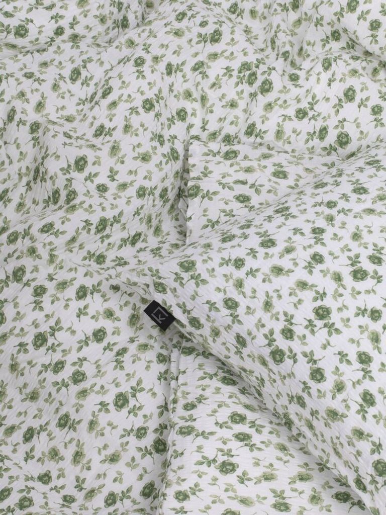 Fagerhult är ett svalkande bäddset i en härligt mjuk bäckebölja. Bäckebölja är ett bomullstyg som kännetecknas av dess bubbliga struktur i tyget, vilket ger en luftig och svalkande känsla mot huden. Fagerhult har ett fint mönster i form av små blommor i vackra gröna toner på en vit bottenfärg. Med bäckeböljan så passar bäddsetet utmärkt till både en varm sommarnatt och kyliga vinternatt. Fagerhult är ett perfekt val till den som vill få ett skönt bäddset som både är prisvärt och härligt att sova i!