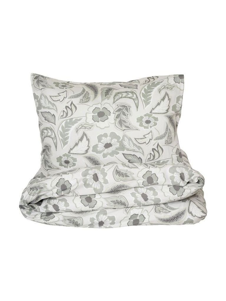 Gillanda välkomnar in våren på ett stilrent och lyxigt sätt. Bäddsetet från Kosta Linnewäfveri är gjort av en skön bomullssatin som bjuder in till en mysig och härlig sovupplevelse bland blommor och blad. Med mönstret av stora blommor och och blad i mjuka beigea och gråa toner upplevs bäddsetet som en vacker inredningsdetalj som livar upp sovrummet!
