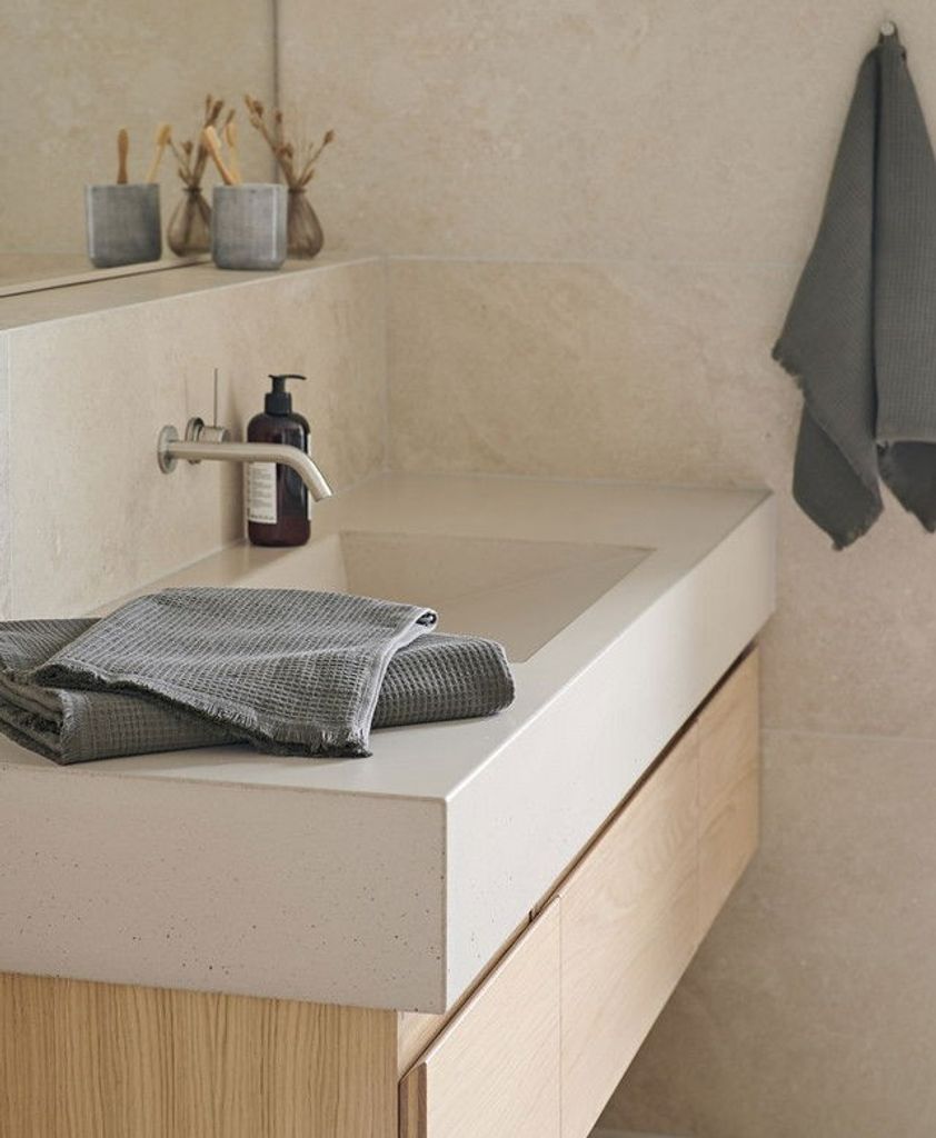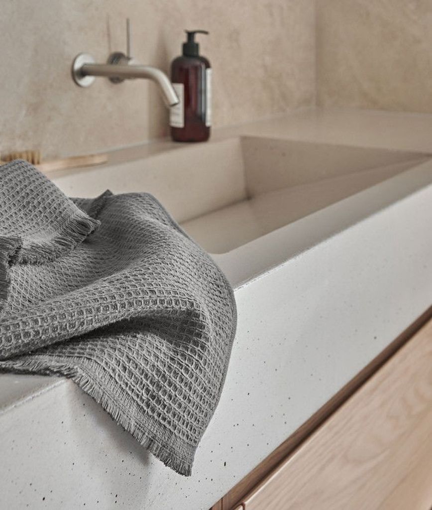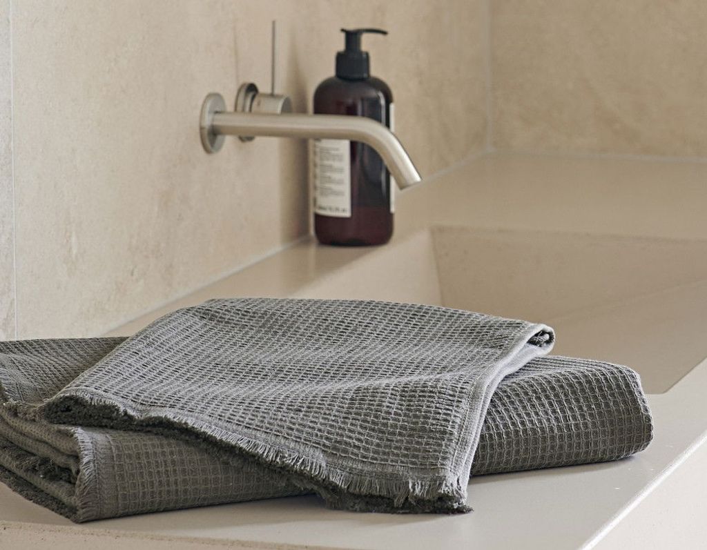 Haze är en härligt mjuk frottéhandduk från Borganäs of Sweden. Handduken har en fin struktur i form av en våffeleffekt på framsidan tillsammans med fransar på kortsidorna. Haze ger den perfekta spa-känslan till badrummet på ett lyxigt och enkelt sätt. Välj bland flera lugna och naturliga färger i serien Haze för att mixa och matcha ihop badrummets härliga textilier.