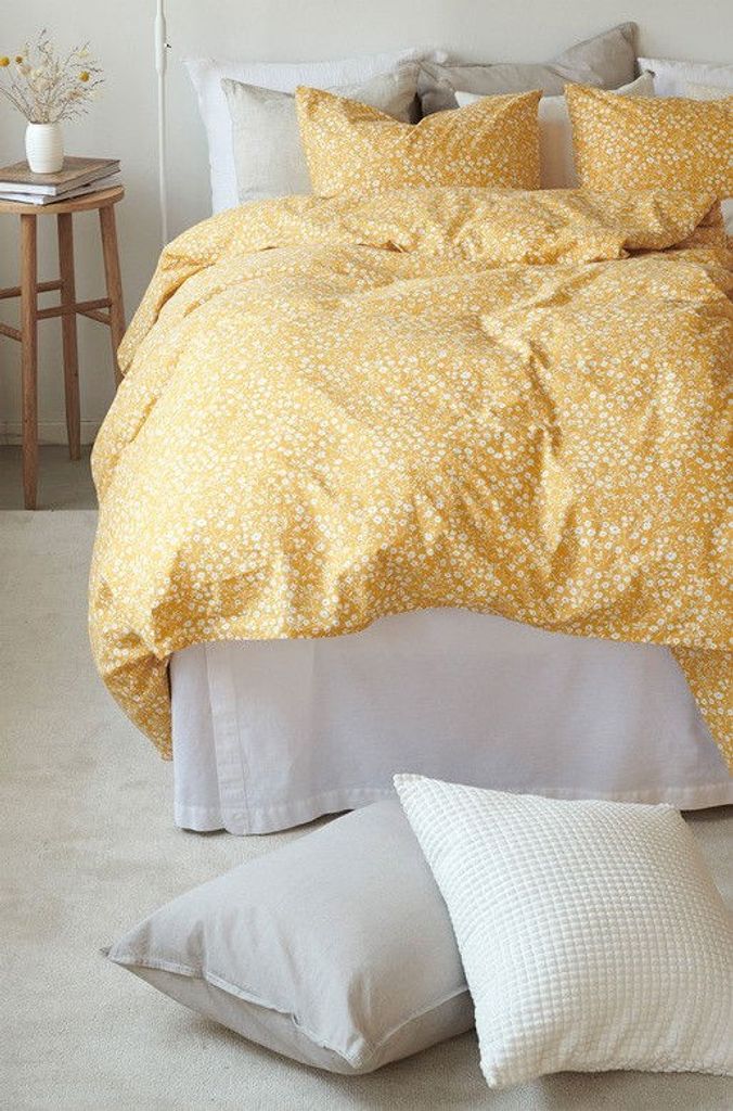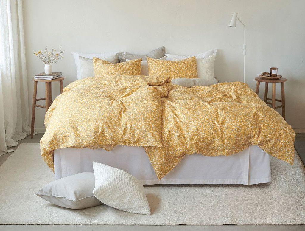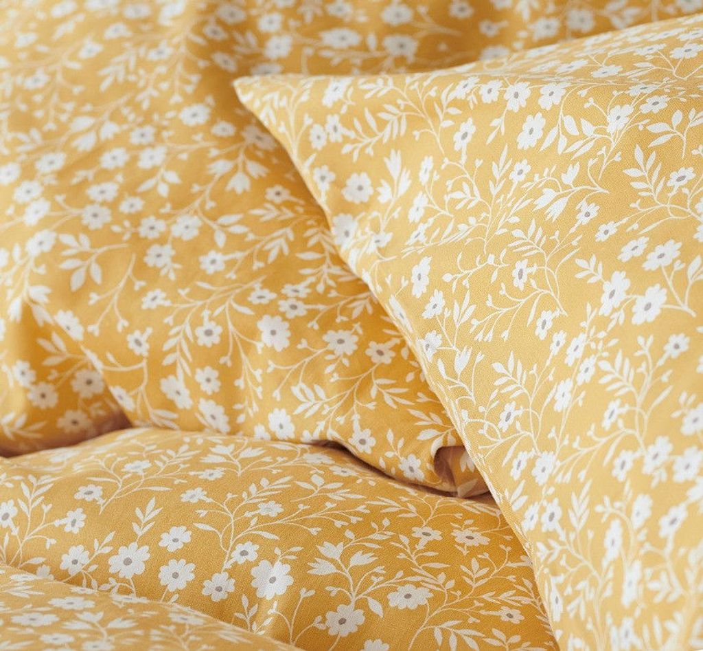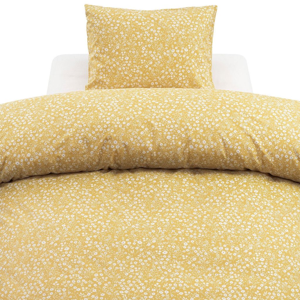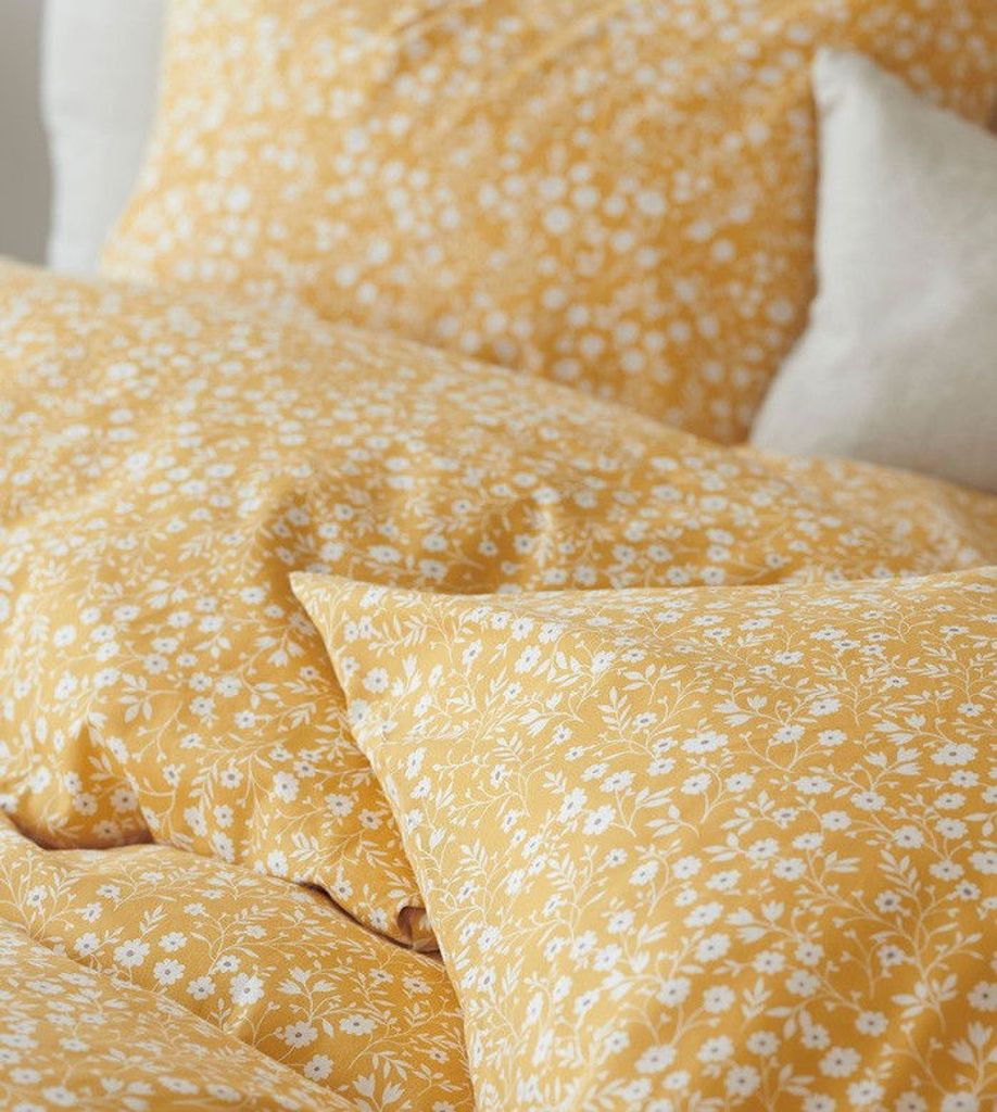 Hedda Gul Småblommigt för enkeltäcke innehåller ett påslakan 150x210 cm och ett örngott 50x60 cm.