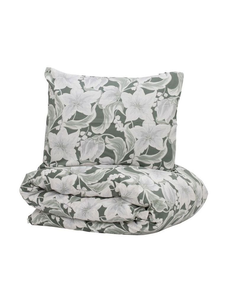Hommedal Blommor Grön Satin Bäddset Enkeltäcke 150x210 Kosta Linnewäfveri