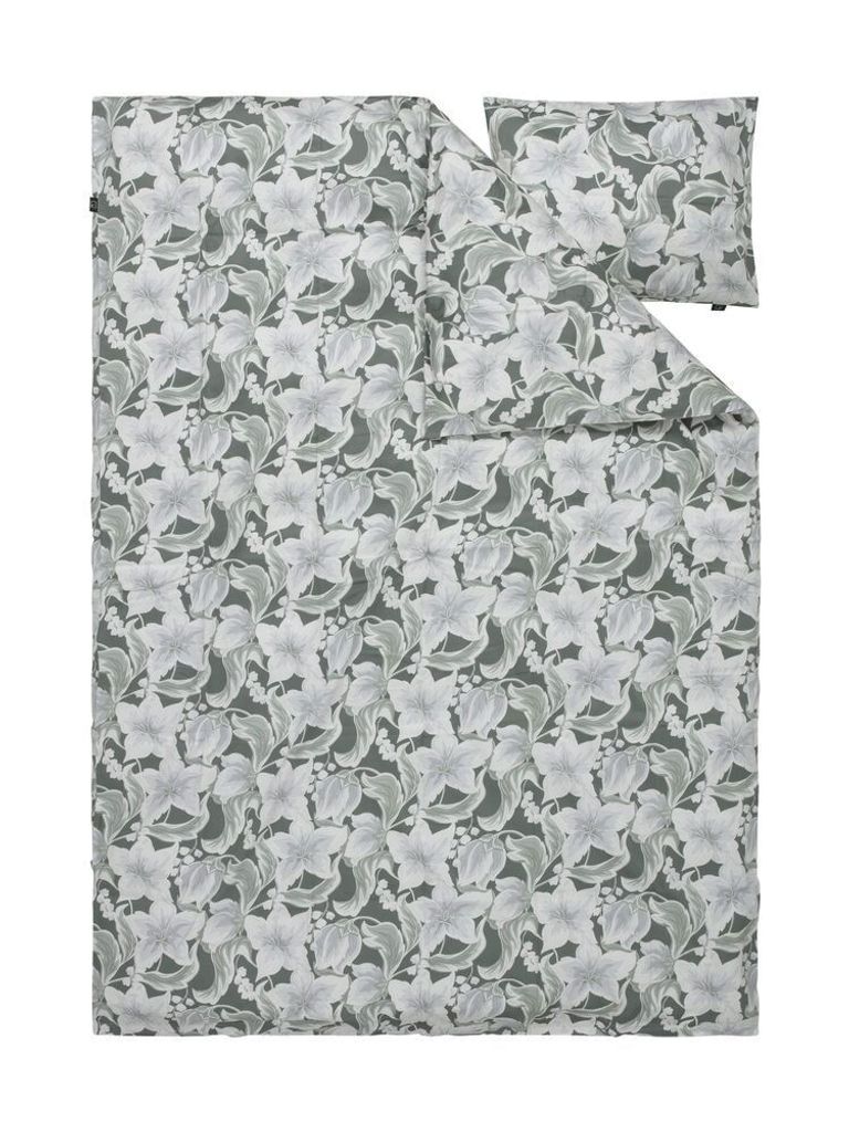 Hommedal välkomnar in hösten på ett stilrent och lyxigt sätt. Bäddsetet är gjort av en skön bomullssatin som bjuder in till en mysig och härlig sovupplevelse bland blommor och blad. Med mönstret av stora blommor och och blad i fina gröna toner upplevs bäddsetet som en vacker inredningsdetalj som livar upp sovrummet!