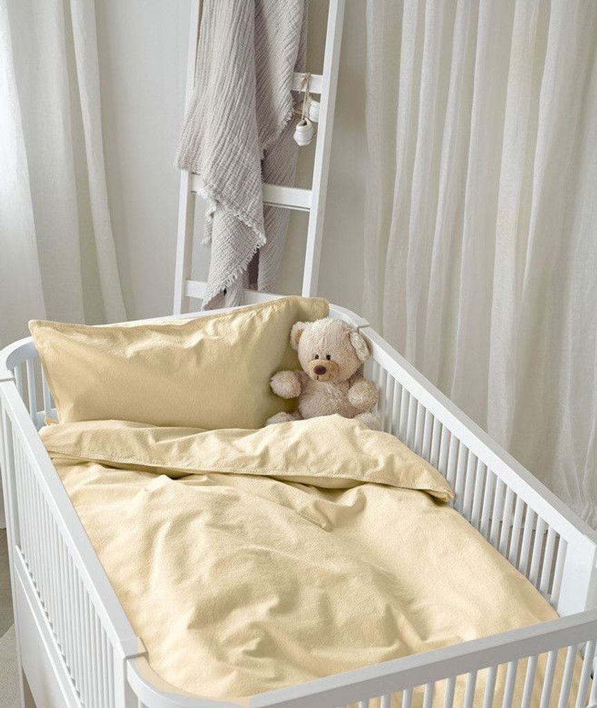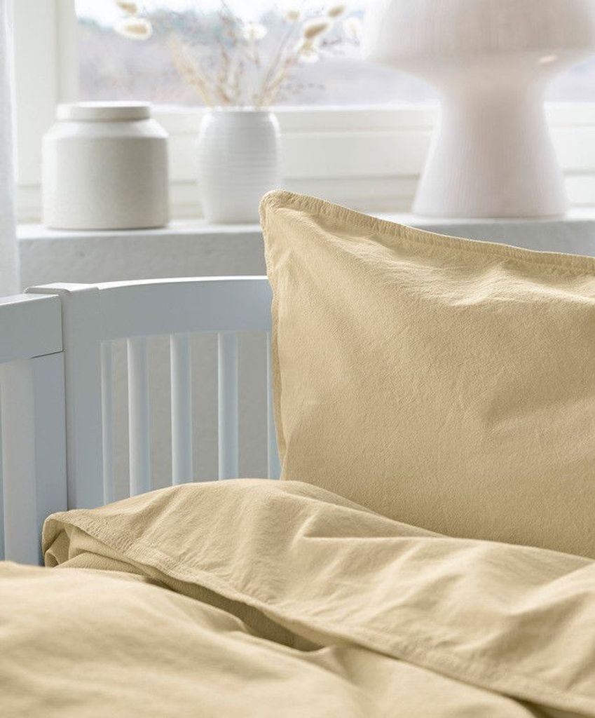 Humble Gul för spjälsäng innehåller ett påslakan 100x130 cm och ett örngott 38x55 cm.