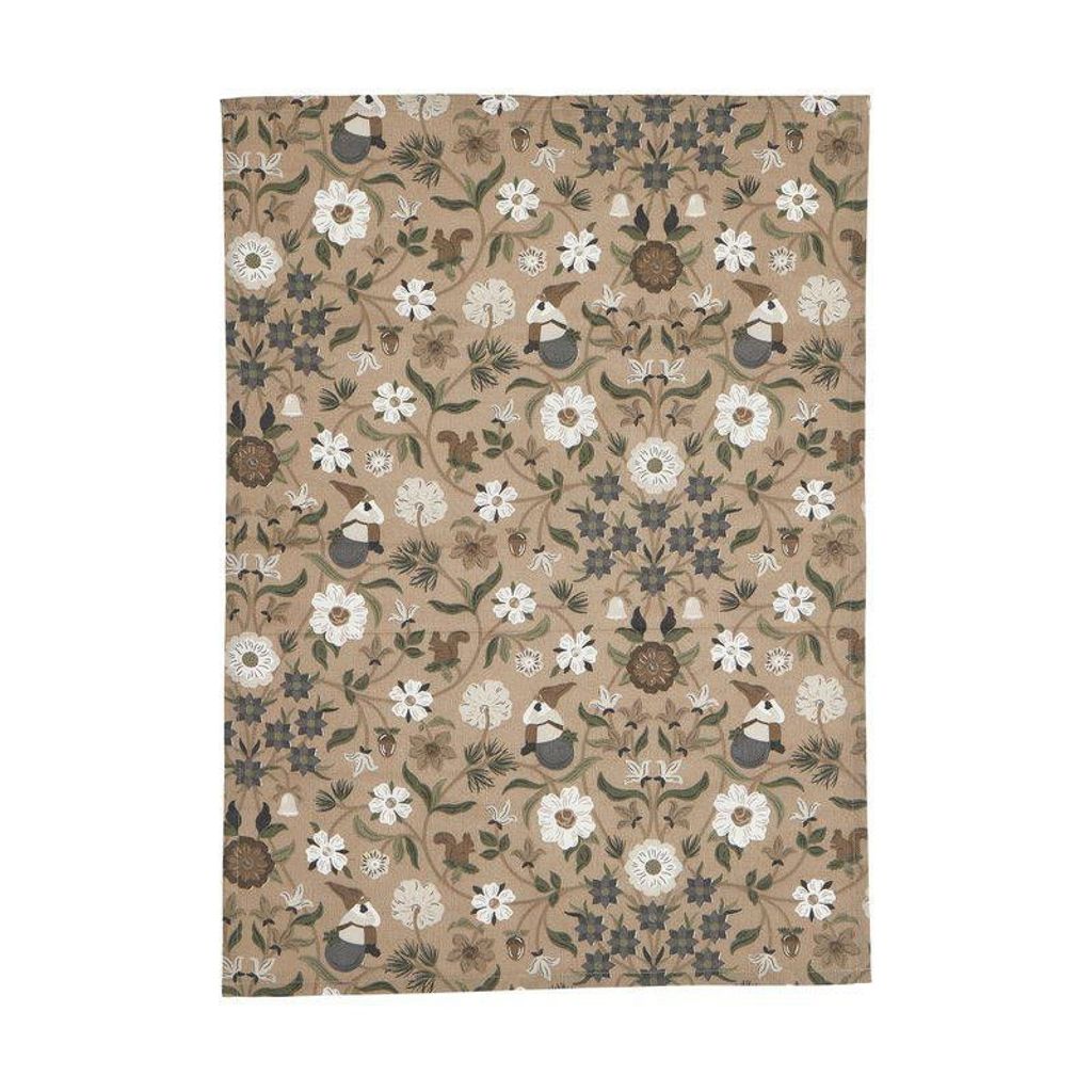Naturnära kökshandduk i 100% OEKO-TEX-certifierad bomull med detaljerat julmönster av blommor, ekorrar och skogsmotiv. Skapar en varm och stämningsfull atmosfär i köket under julen.
