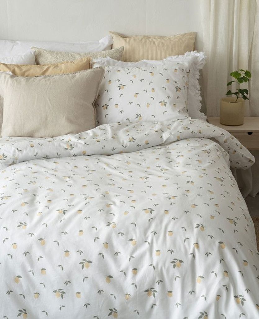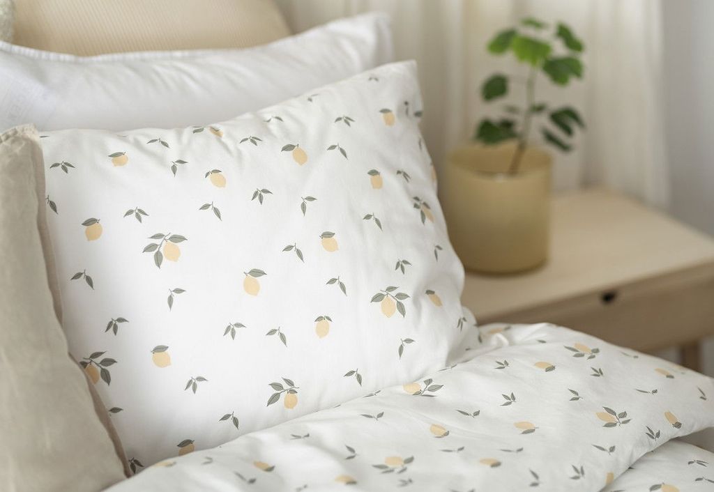 Lemons är tillverkat av 100 % bomull och har en trådtäthet på 144 TC, som gör att sängkläderna blir mjuka att sova i. Påslakanet har hörnhål upptill för en smidig bäddning och örngottet har en kuvertöppning som praktiskt håller kudden på plats hela natten.