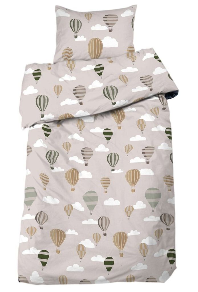 Luftballong Beige/Grön Barn för enkeltäcke innehåller ett påslakan 150x210 cm och ett örngott 50x60 cm.