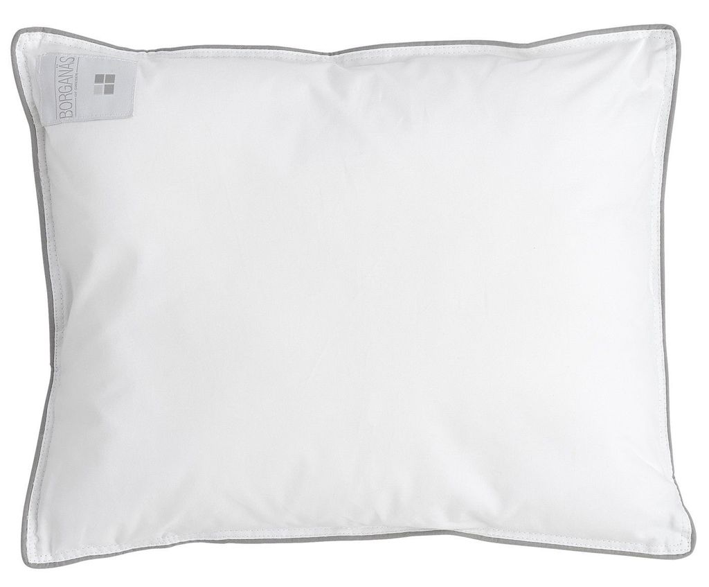 Här är en lyxig kudde till en vagn eller vagga som ger den rätta hotellkänslan till sömnupplevelsen till barnen. Kudden från Borganäs of Sweden är tillverkad av 100 % bomullscambric med en fyllning av 65 gram hålfiber. Bomullscambricen är mycket slitstark och är gjord för att hålla länge. Kudden har en passpoalkant i grått runt om kudden som en extra touch på hotellupplevelsen.