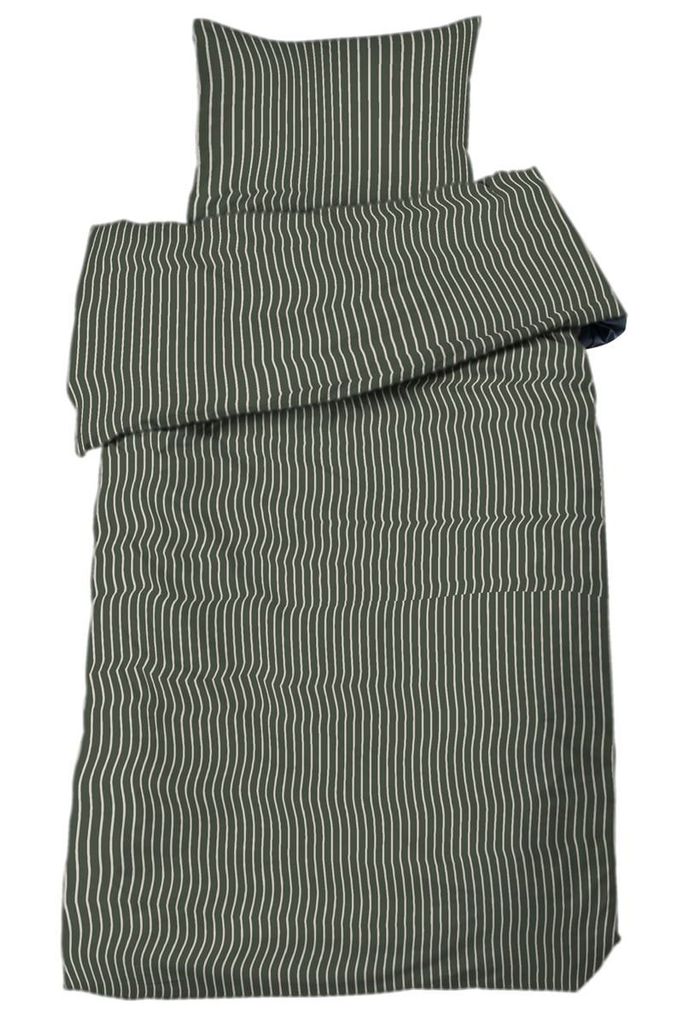 Malte Randigt Oliv för enkeltäcke innehåller ett påslakan 150x210 cm och ett örngott 50x60 cm.