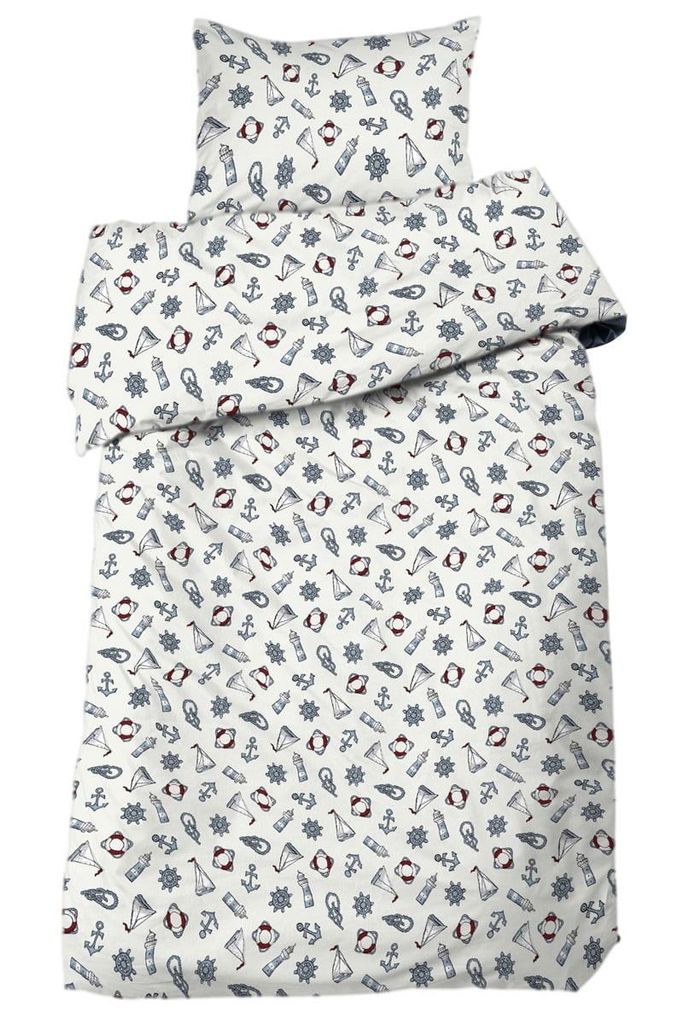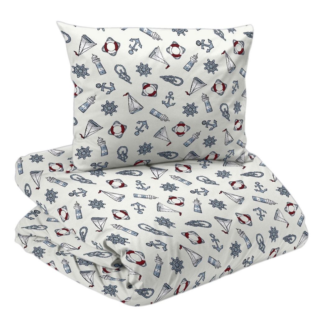 Maritim Vit Båtar för enkeltäcke innehåller ett påslakan 150x210 cm och ett örngott 50x60 cm.