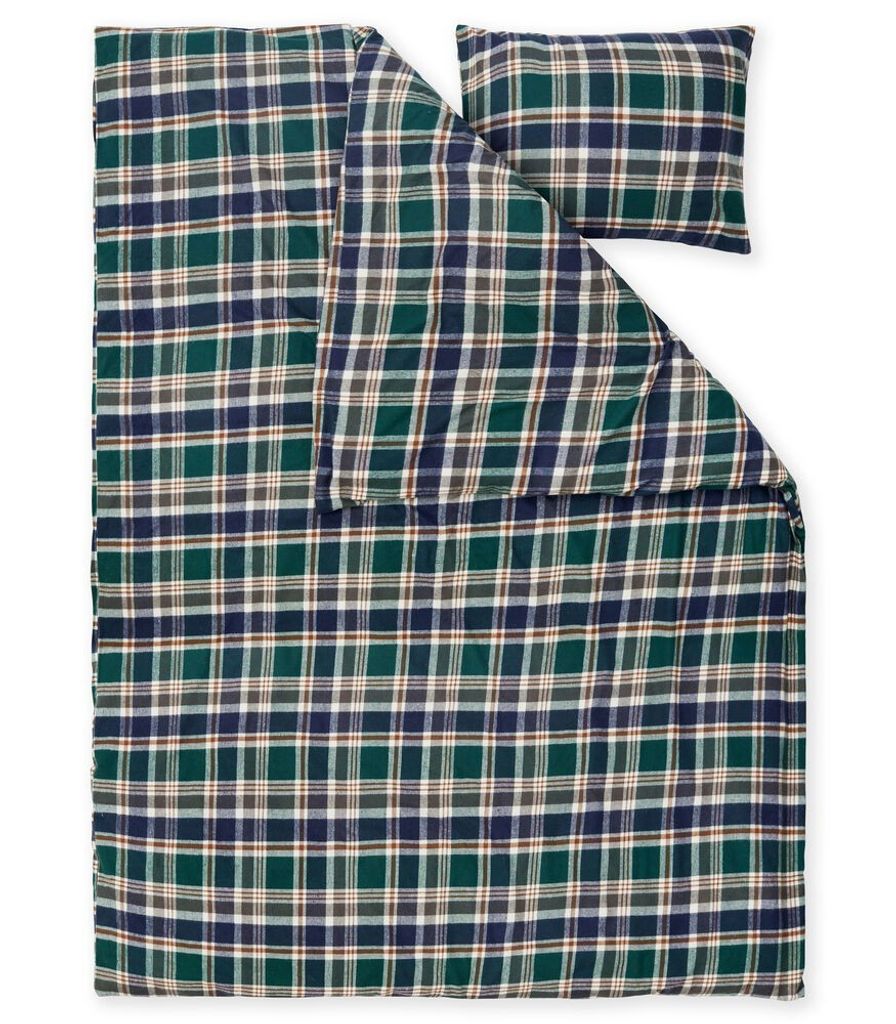 Mellbyn Flanell Rutigt Grön Bäddset Enkeltäcke 150x210 Lord Nelson