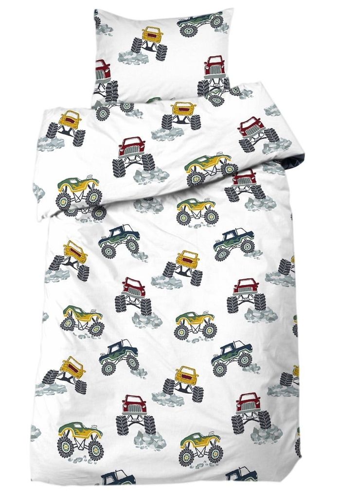 Monstertruck Vit Barn Bäddset Enkeltäcke 150x210 Redlunds