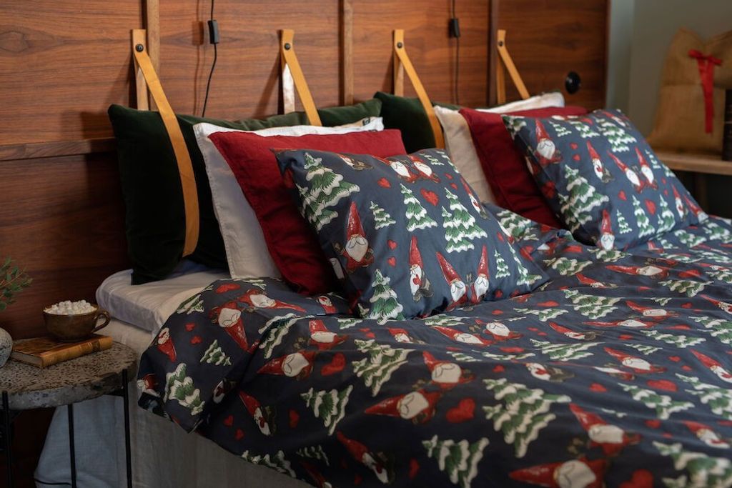 Nisse är ett juligt bäddset som välkomnar in julen på ett mysigt sätt och är mycket skönt och trevligt att sova i. Nisse har ett fint julmönster av söta små tomtenissar med granar täckta med snö på en marin bottenfärg. Tjuvstarta julinredningen redan nu med Nisse och få in julkänslan i sovrummet i tid!