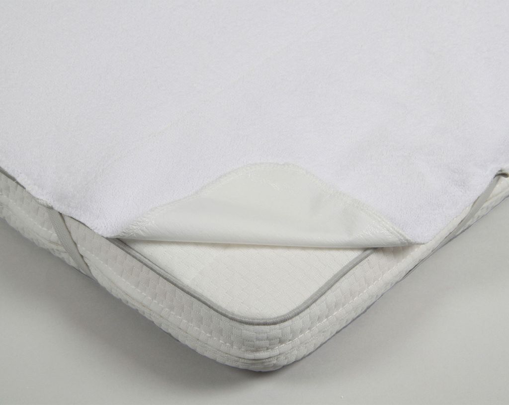 Färdigsytt vattentätt madrasskydd i frotté med gummiband på undersidan för att det ska ligga på plats. Undersidan består av miljövänlig PU (polyuretan).