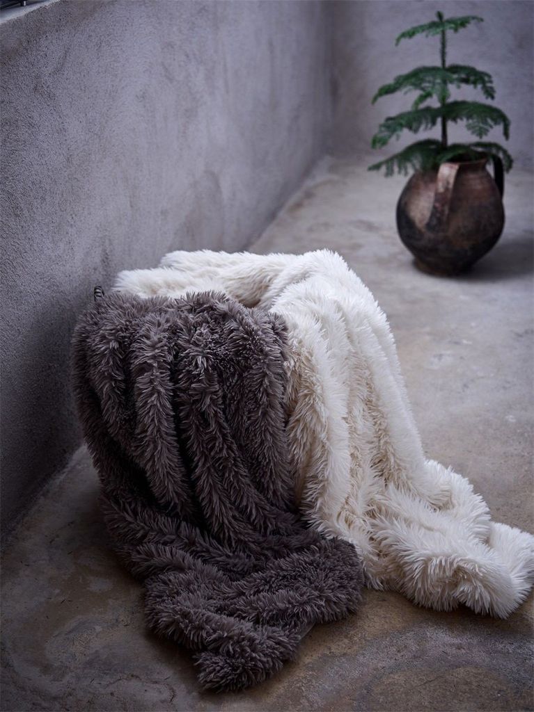 Pläd med fuskpäls och len mikromink – mjuk, varm och dekorativ. Den neutrala färgen gör den lätt att matcha med annan inredning. Ett enkelt sätt att addera komfort och värme till hemmet.