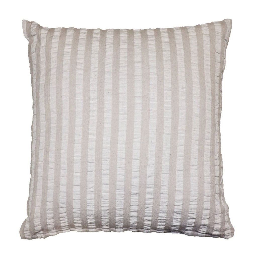 Polly ger en luftig känsla till soffans nyheter. Kuddfodralet välkomnar in vårkänslan med ett klassiskt randigt mönster i en tvåfärgad skala av beiget. Kuddfodralet är tillverkat i en mjuk och luftig kvalitet av bäckebölja som garanterar att vårglädjen skapas direkt när kuddfodralet landar i soffan!