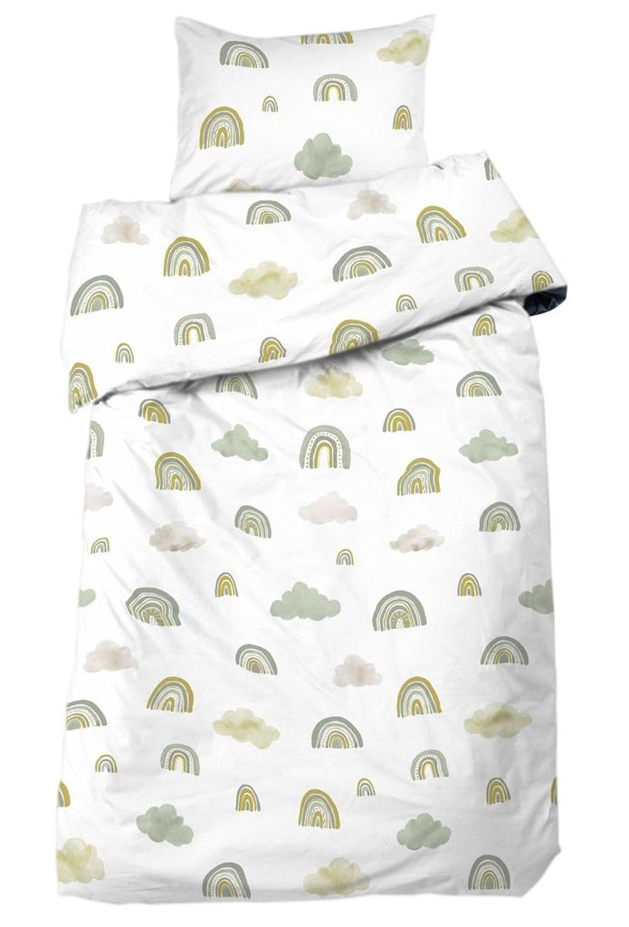Rainbows är ett härligt bäddset som har ett fint mönster av regnbågar och moln. Motivet har en fin grön färgskala som framhävs på en klassiskt vit bottenfärg. Ett bäddset som man kan lita på ger en somrig känsla till sovrummet. Skapa en fräsch känsla i barnrummet inför vårens och sommarens härligheter!