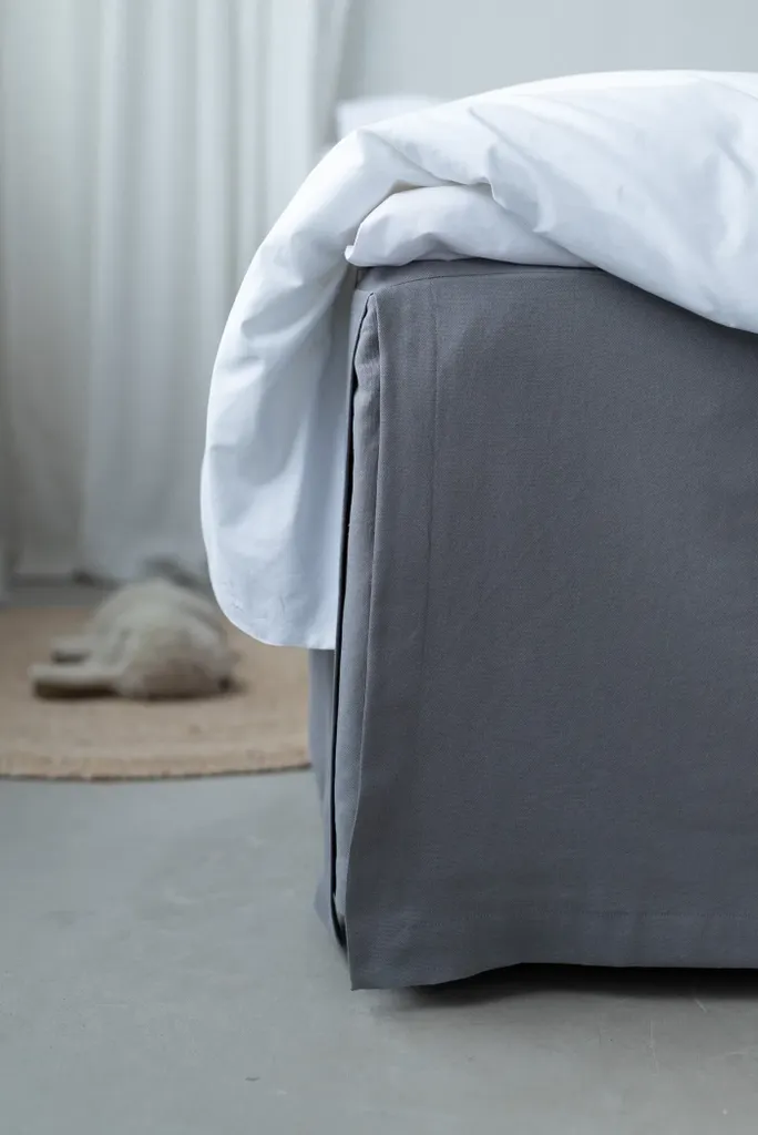 Sängkappan är tillverkad av 100 % bomull och har en trådtäthet på 112 TC, som gör att kappan blir mjuk och får ett fint fall. Långsidornas och fotändans kortsida har en höjd på 45 cm som täcker perfekt. Huvudändans kortsida har en höjd på 30 cm, vilket bidrar till en perfekt längd vare sig sängen har en sänggavel eller inte.