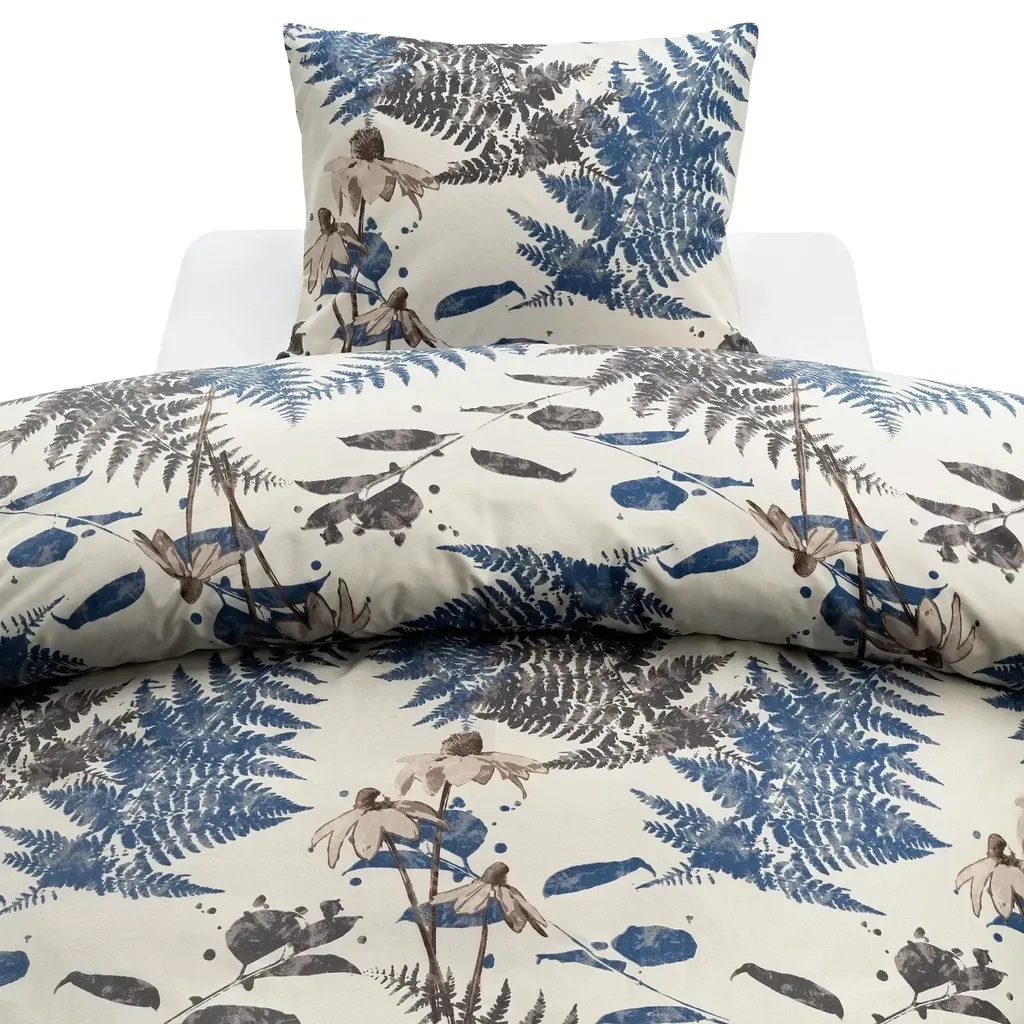Skogsdunge Marinblå Natur innehåller ett påslakan 150x210 cm och ett örngott 50x60 cm.