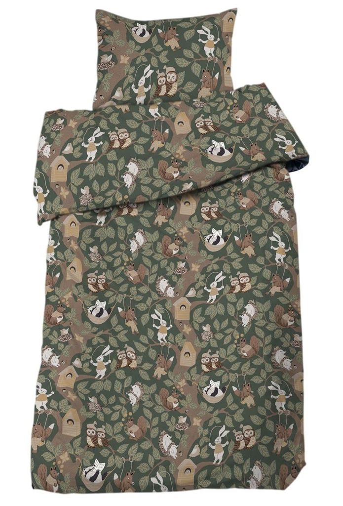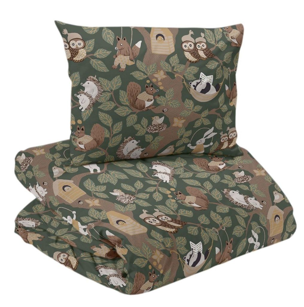 Skogsliv Söta Djur Grön Barn Bäddset Enkeltäcke 150x210 Redlunds