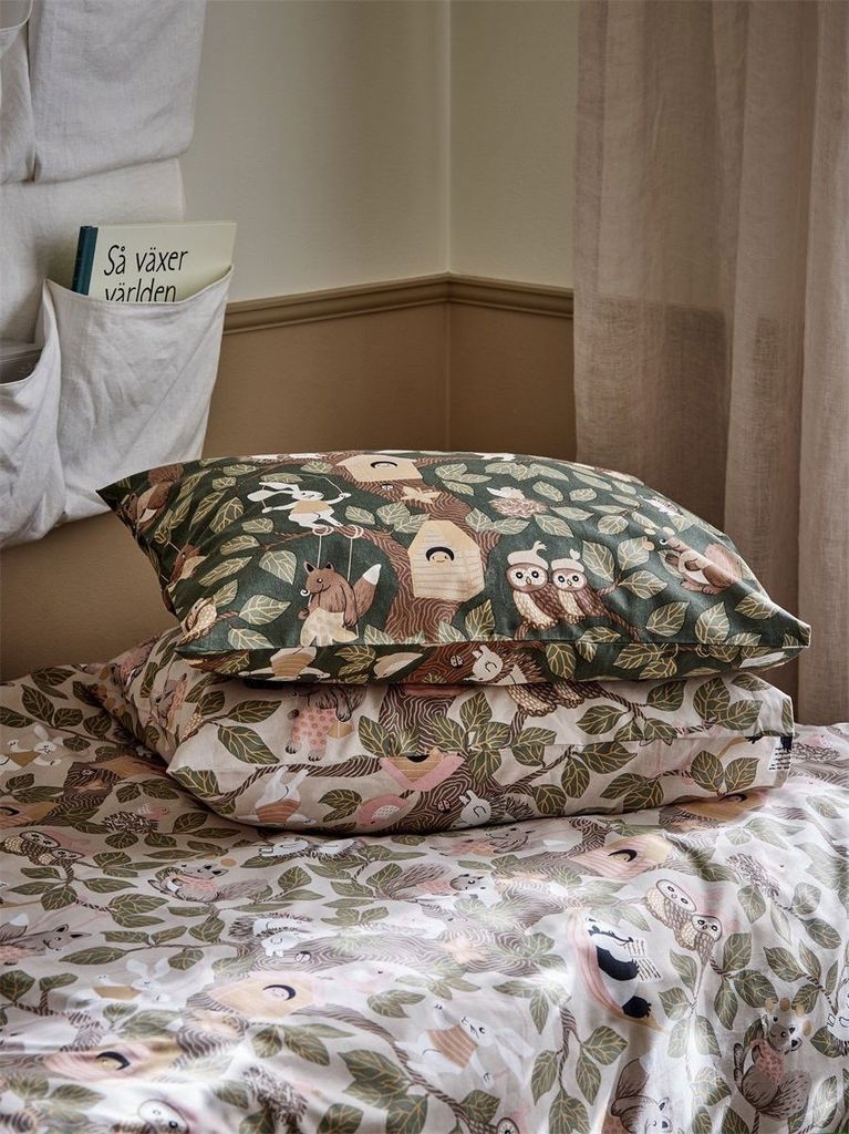 Skogsliv är ett gulligt bäddset som ger barnrummet en härlig känsla. Skogsliv har ett fint mönster bestående söta djur bland träden på en grön bottenfärg som ger ett sött uttryck till barnrummet. Utforska vad djuren gör tillsammans med barnen, samtidigt som att ge dem en god natts sömn varje natt!