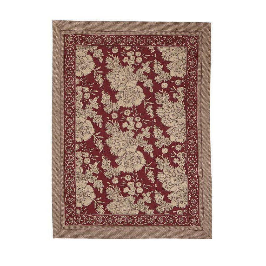 Elegant kökshandduk i 100% OEKO-TEX-certifierad bomull med magnifikt blomstermönster och dekorativ bård. Den livfulla röda färgen skapar en inbjudande atmosfär i köket och passar både vardag och fest.