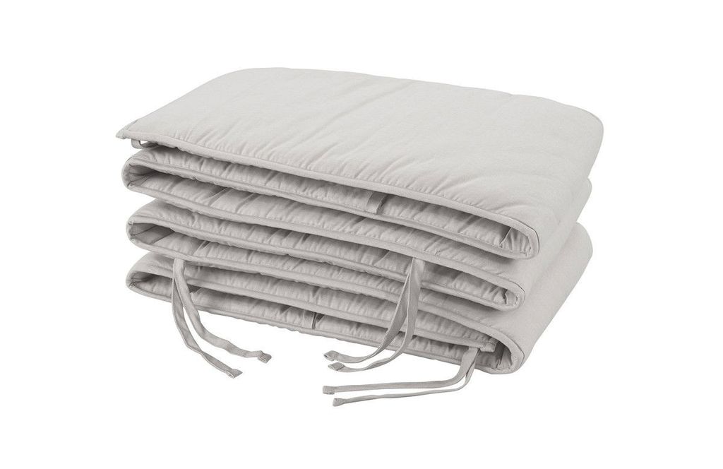 Borganäs of Swedens spjälsängsskydd ger ett perfekt skydd runt om i spjälsängen. Skyddet har praktiska knytband som håller skyddet på plats i spjälsängen och har en mycket mjuk vaddering. Här skyddas barnet från spjälsängens väggar under hela natten och under varje tupplur!