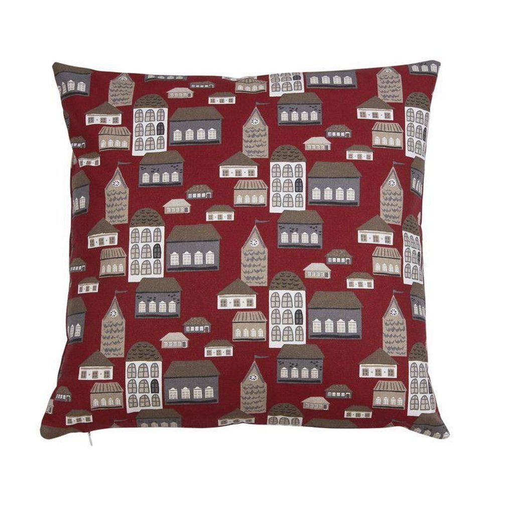 Stad Röd Kuddfodral från Fondaco är en modern och unik inredningsdetalj med husmotiv. Tillverkad i 100% bomull, ger karaktär och färg till ditt hem.
