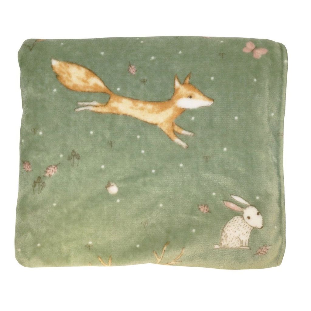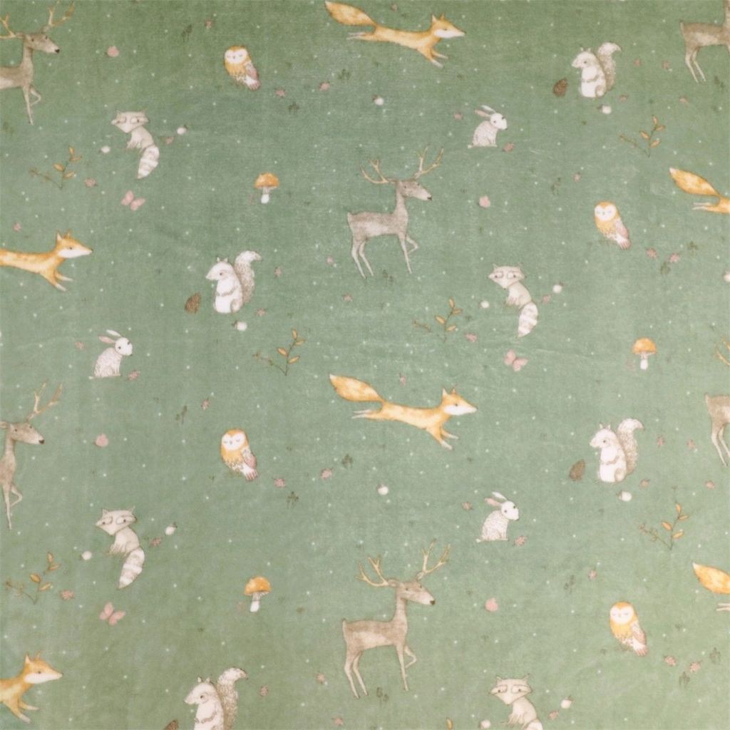 Stampe är en härlig pläd som ger barnrummet en gullig känsla. Skogsliv har ett fint mönster bestående söta djur. De färgglada djuren har en grön bottenfärg som ger ett sött uttryck till barnrummet.