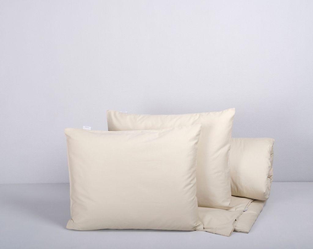 Vännäs Beige Satin för enkeltäcke innehåller ett påslakan 150x210 cm och två stycken örngott 50x60 cm.