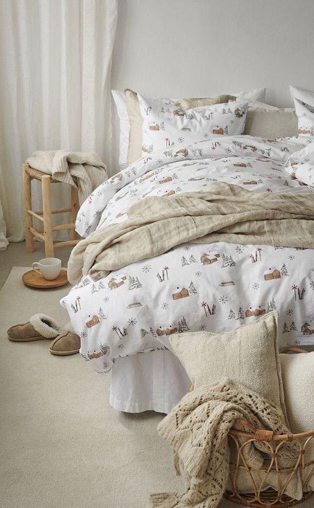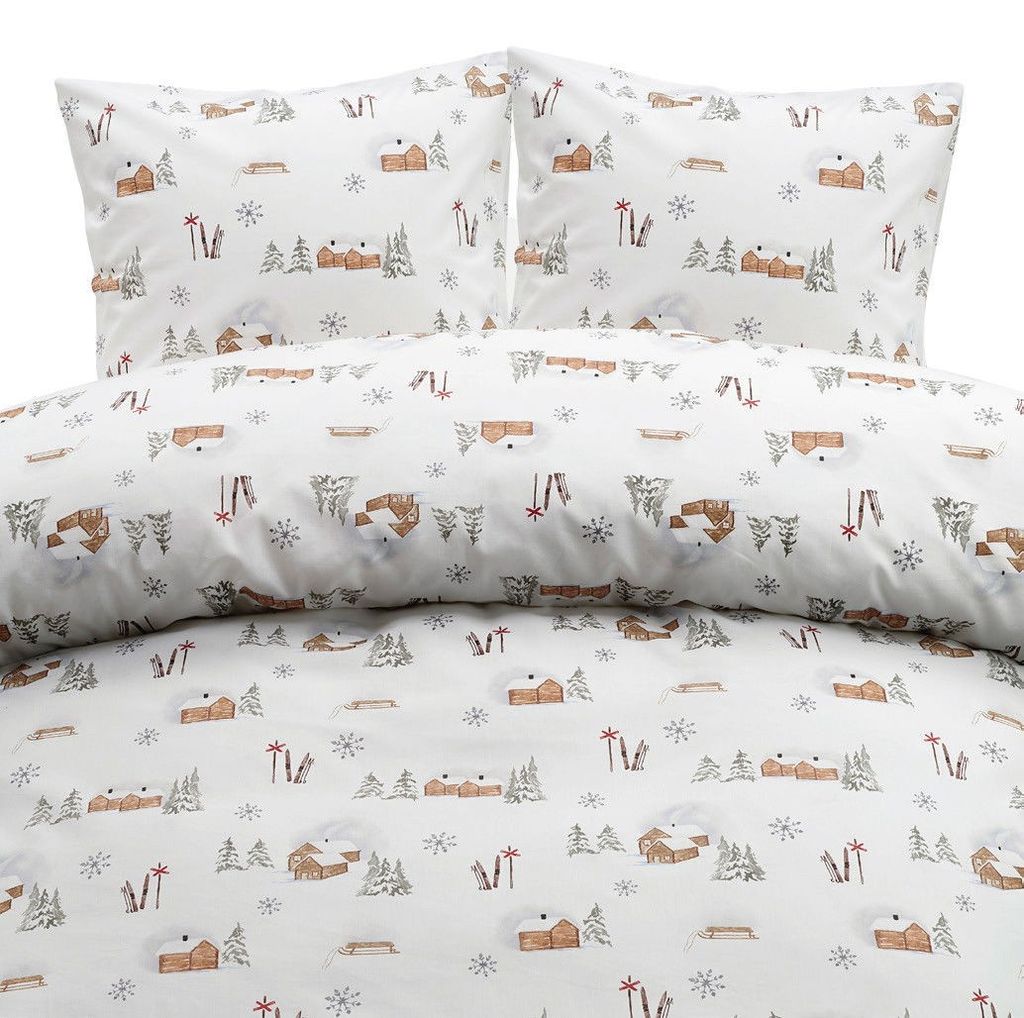 Vinterdala är ett vintrigt bäddset tillverkat av 100 % bomull. Borganäs of Sweden har tagit viktiga element som kännetecknar julen och skapat ett bäddset med ett vackert mönster av fina hus, granar, skidor och slädar. Bäddsetet Vinterdala har en unikhet som gör att juldekorationen i hemmet blir extra lätt och smakfull i år!