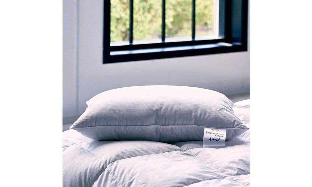 Engmo duns finaste kuddserie Noble Astrid med gåsdun som är stora och luftiga vilket ger mjuka kuddar. Vila riktigt mjukt på Astrid Mjuk & Låg
