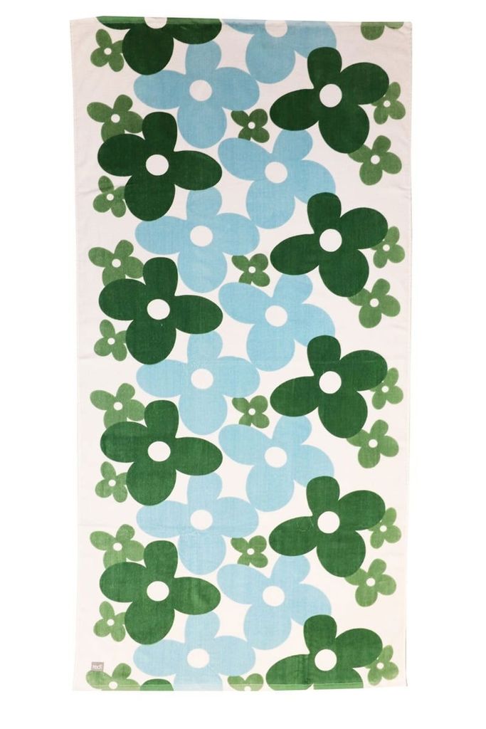 Njut av strandlivet med badlakanet Happy. Badlakanet passar perfekt till sommarens alla strandhärligheter. Svep in bland de fina blommorna i grönt och blått och njut av att hållas torr under hela strandvistelsen. Börja sommaren med Happy som kommer bringa fram glädjen efter varje dopp!