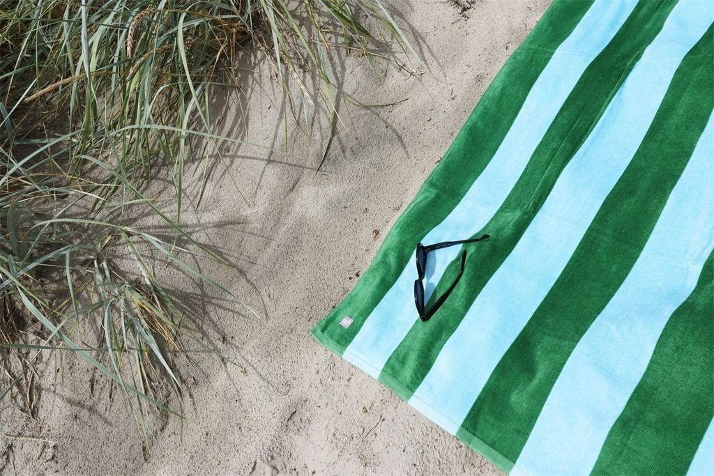 Njut av strandlivet med badlakanet Happy Stripe. Badlakanet passar perfekt till sommarens alla strandhärligheter. Svep in bland de klassiska ränderna i de underbara färgerna grönt och blått och njut av att hållas torr under hela strandvistelsen. Börja sommaren med Happy Stripe som kommer bringa fram glädjen efter varje dopp!
