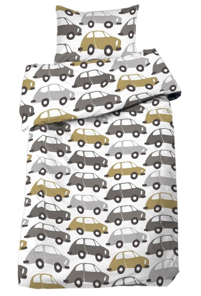 Bilar Vit/Grå Barn för spjälsäng innehåller ett påslakan 100x130 cm och ett örngott 35x55 cm.
