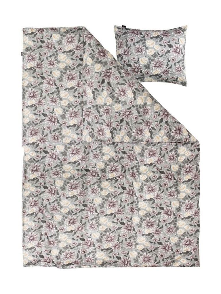 Bollungen Satin Grå Blommor Bäddset Enkeltäcke 150x210 Kosta Linnewäfveri