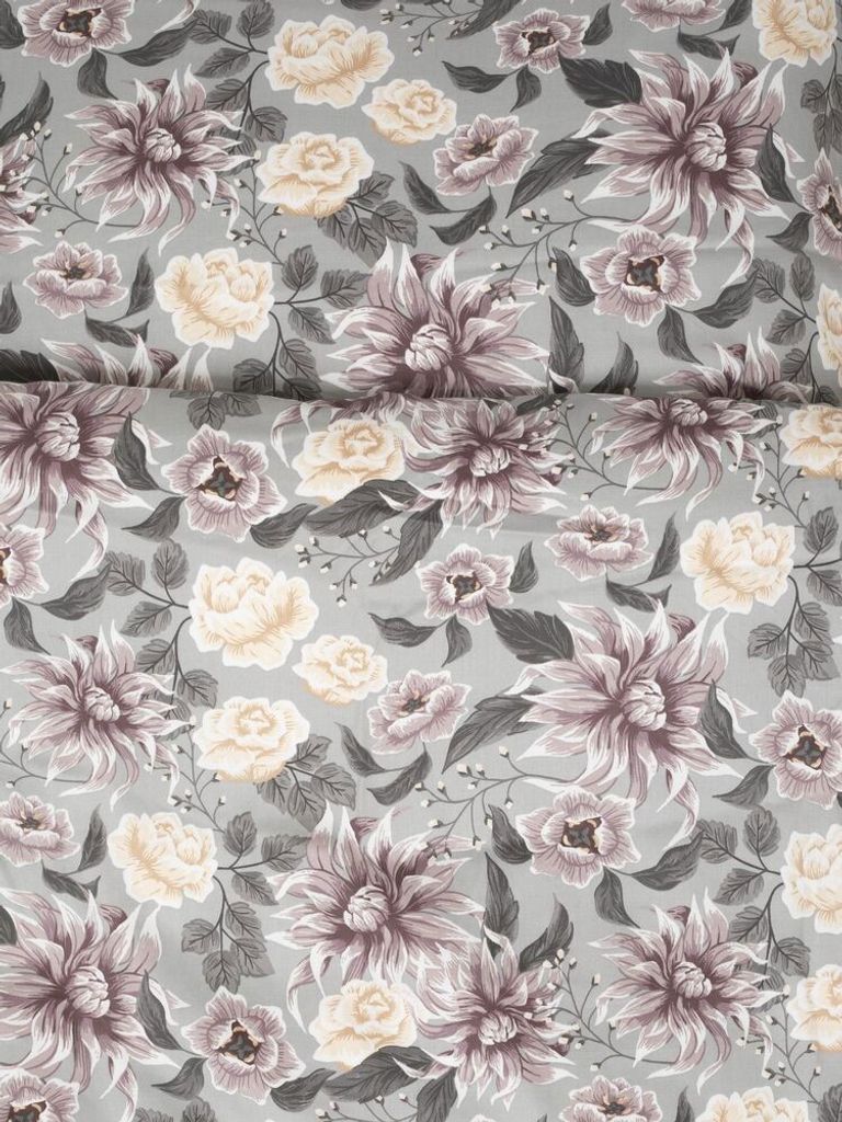 Bollungen Satin Grå Blommor för enkeltäcke innehåller ett påslakan 150x210 cm och ett örngott 50x60 cm.