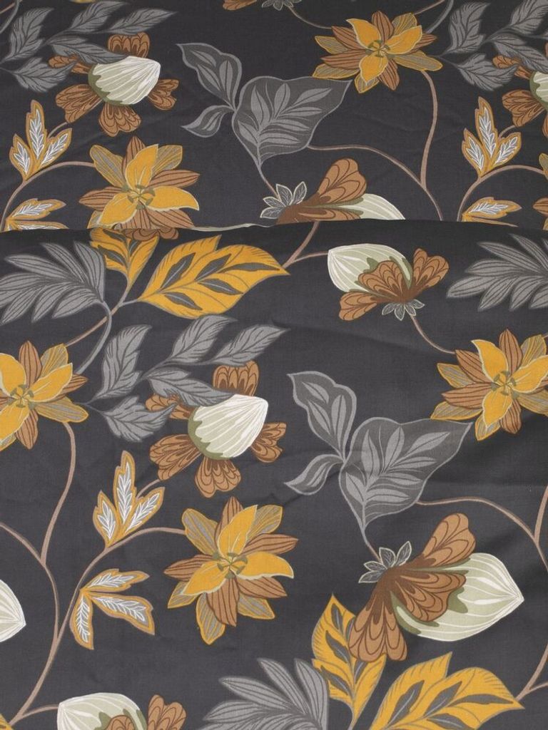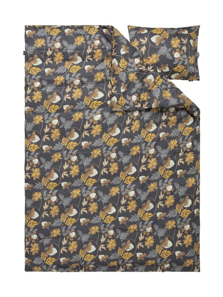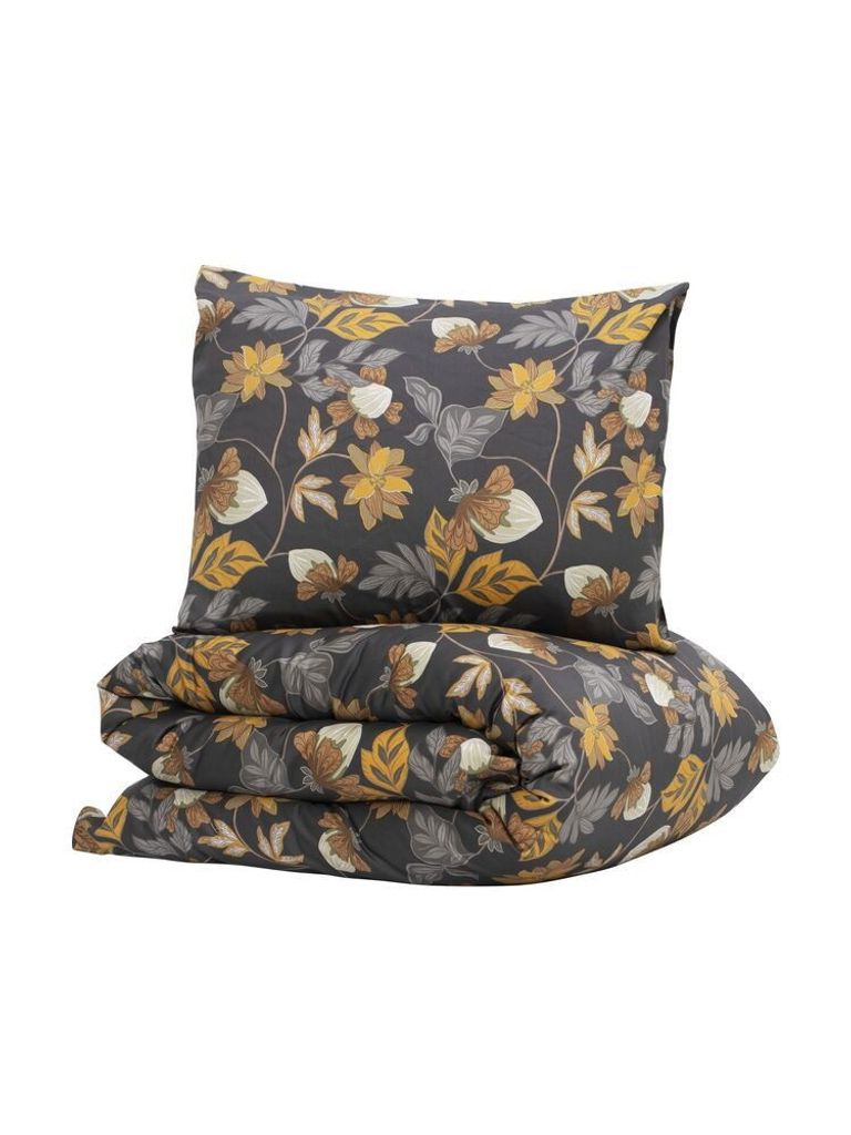 Bratteby Grafit Blommigt Satin Bäddset Enkeltäcke 150x210 Kosta Linnewäfveri