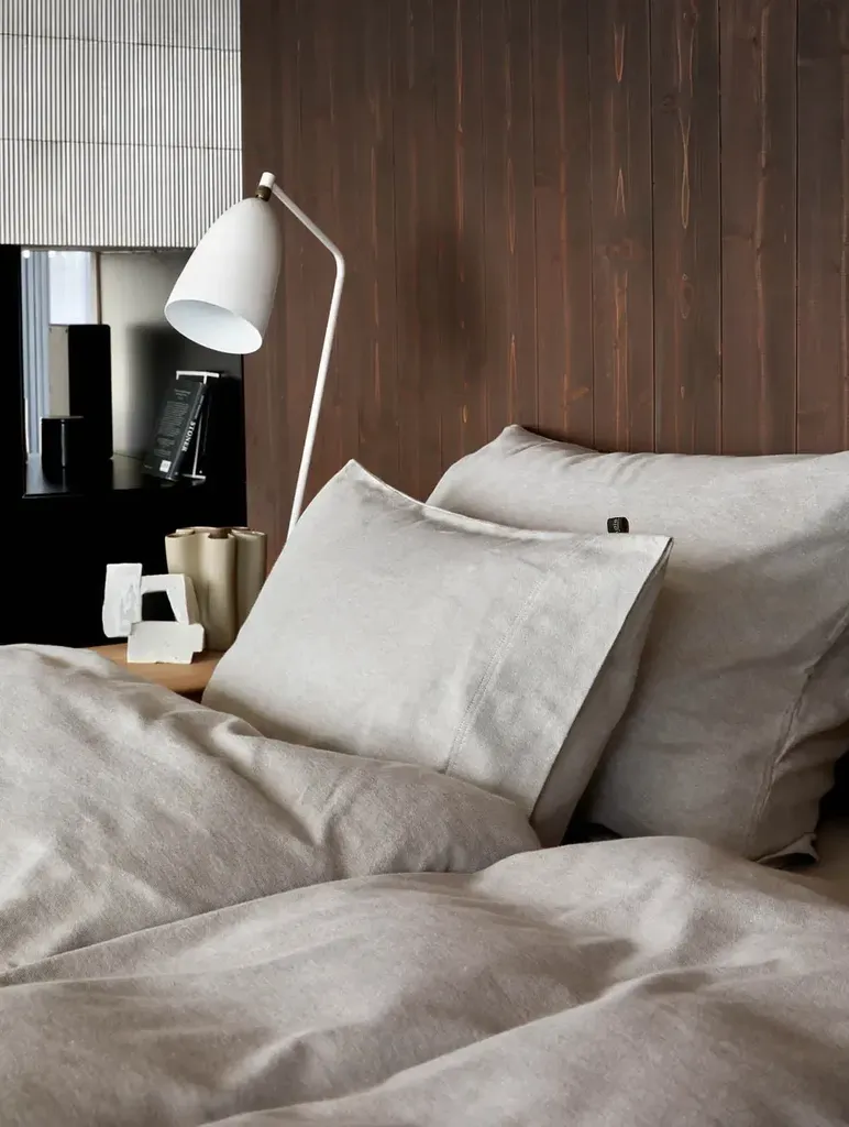 Flanelltygets trådar är noga utvalda och vävda samman för att skapa den unika kvaliteten som Höie strävar efter. Påslakanet har en dragkedja nedtill som förslutning och har inga hörnhål. Örngottet har en öppning på ena sidan för en smidig bäddning.