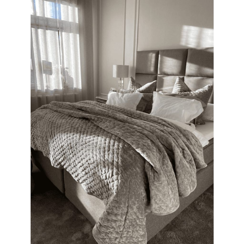 Svanefors levererar ett vackert överkast som är qulitad i en sammetsimitation. Dekorativa broderade prickar som ger dessa subtila detaljer en touch av förfining till överkastet samt ger det en unik karaktär. Med en perfekt balans mellan tidlös design och moderna detaljer tillför detta överkast en lyxig känsla i sovrummet!