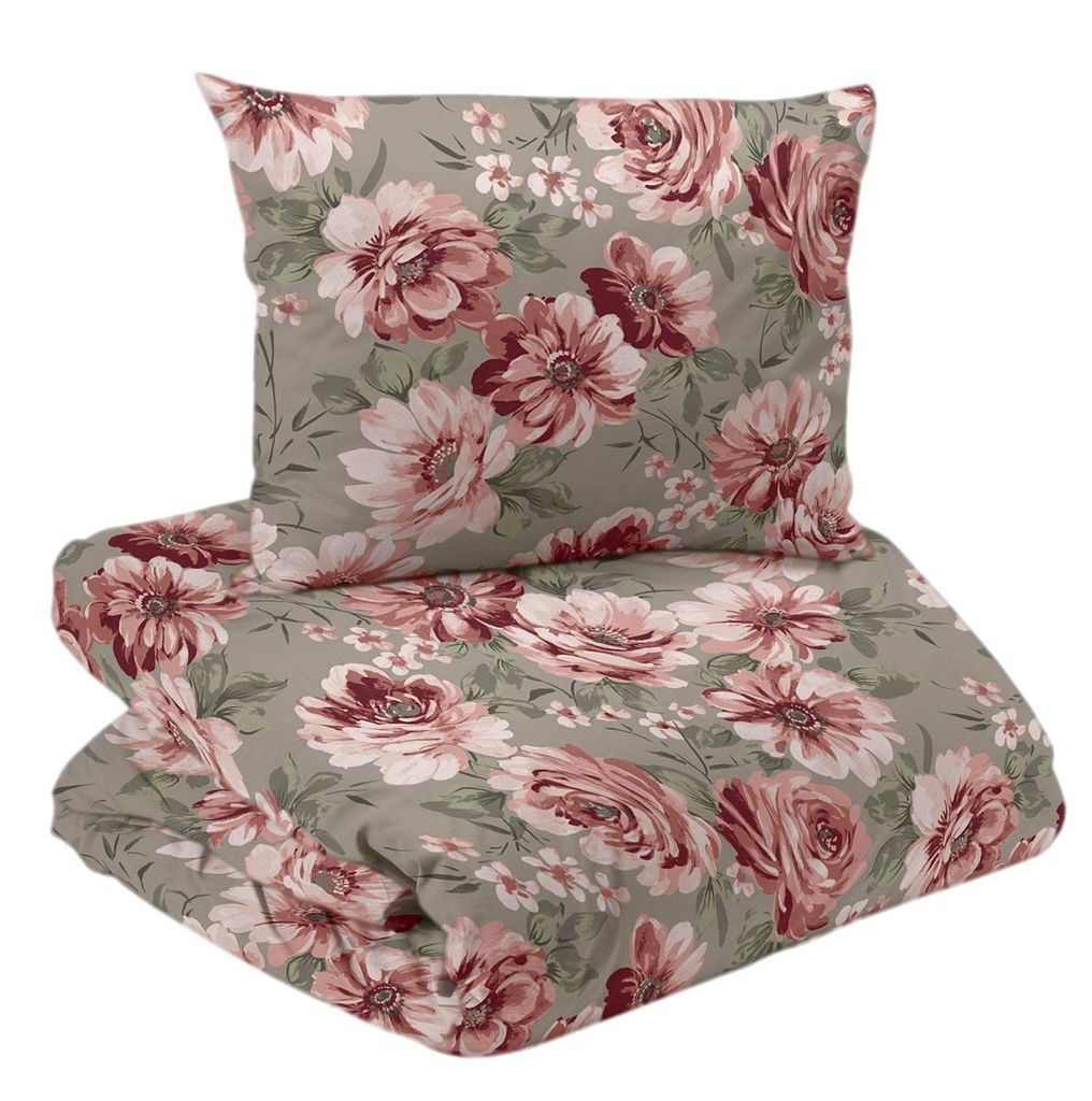 Romantiskt satinbäddset i 100 % bomull med blommönster i rosa och beiga toner. Den släta ytan och trådtätheten på 200 TC ger en mjuk och lyxig känsla. Ett stilfullt sätt att ge sovrummet en varm och inbjudande atmosfär.