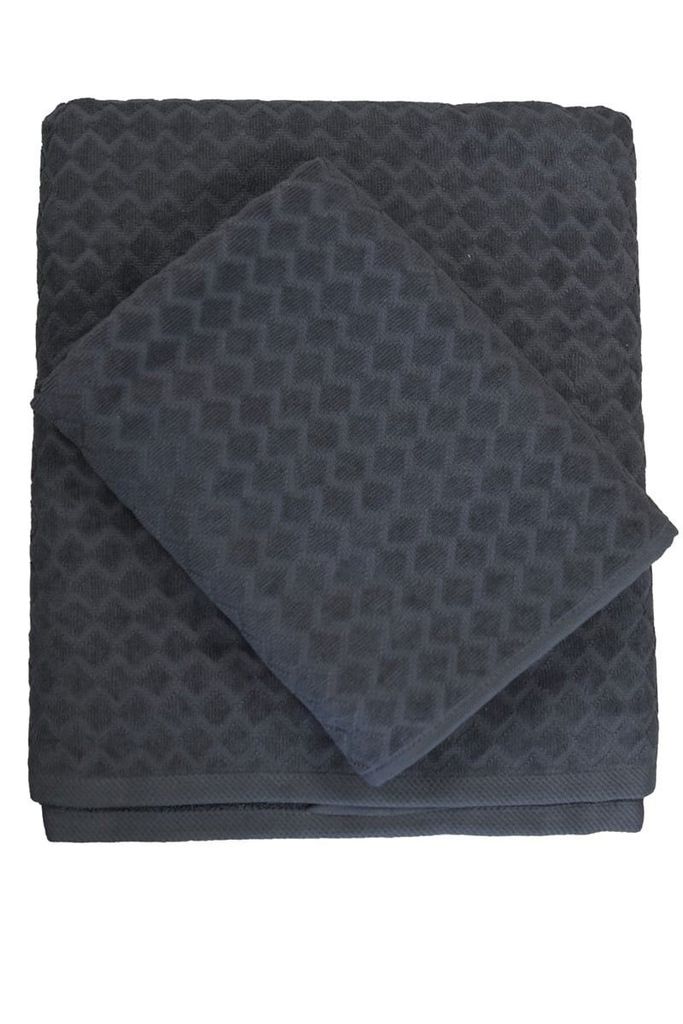 Diamond är en härlig och skön badrumsfrotté i varianterna badrumshandduk och badlakan. Handdukarna har en djup mörkgrå nyans som gör att den upplevs som lyxig och exklusiv. Diamond är tillverkad av bomull i en lyxig velour med ett diskret rutmönster. Detta är ett perfekt val till den som vill lyxa till vardagen samtidigt som att känna sig torr och fräsch!