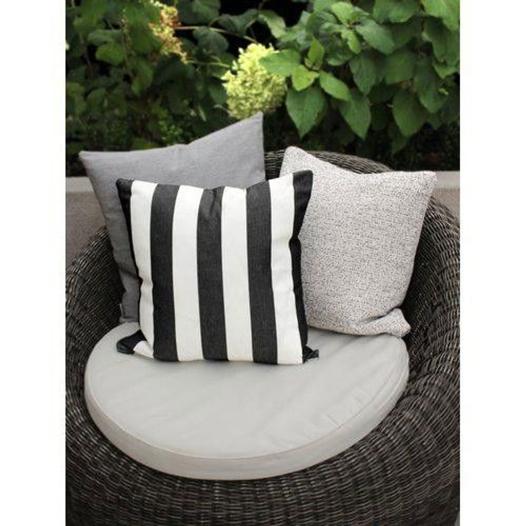 Detta moderna kuddfodral från Svanefors kännetecknas av sin stilrena svartvita randiga design, vilket ger en sofistikerad touch till utomhusmiljö. Tyget är speciellt utvecklat för att motstå väder och vind, medan OEKO-TEX®-certifieringen garanterar att det är fritt från skadliga ämnen, vilket gör det både ett säkert och miljövänligt val.