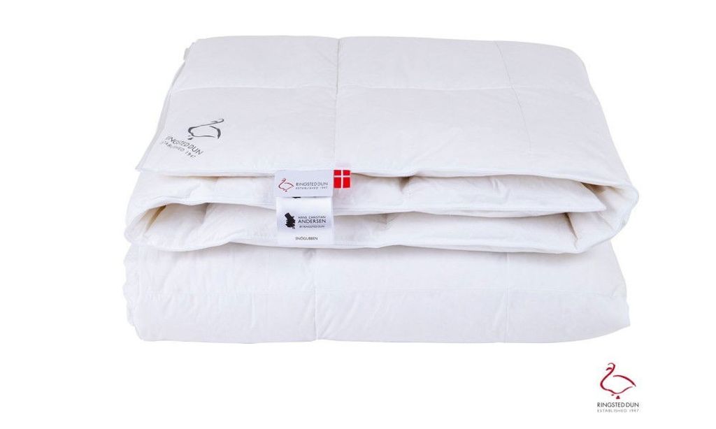 Medelvarmt och allergivänligt duntäcke från Ringsted Dun, fyllt med 90% anddun. Passar året om och ger en lagom temperatur. Tillverkat i Danmark.